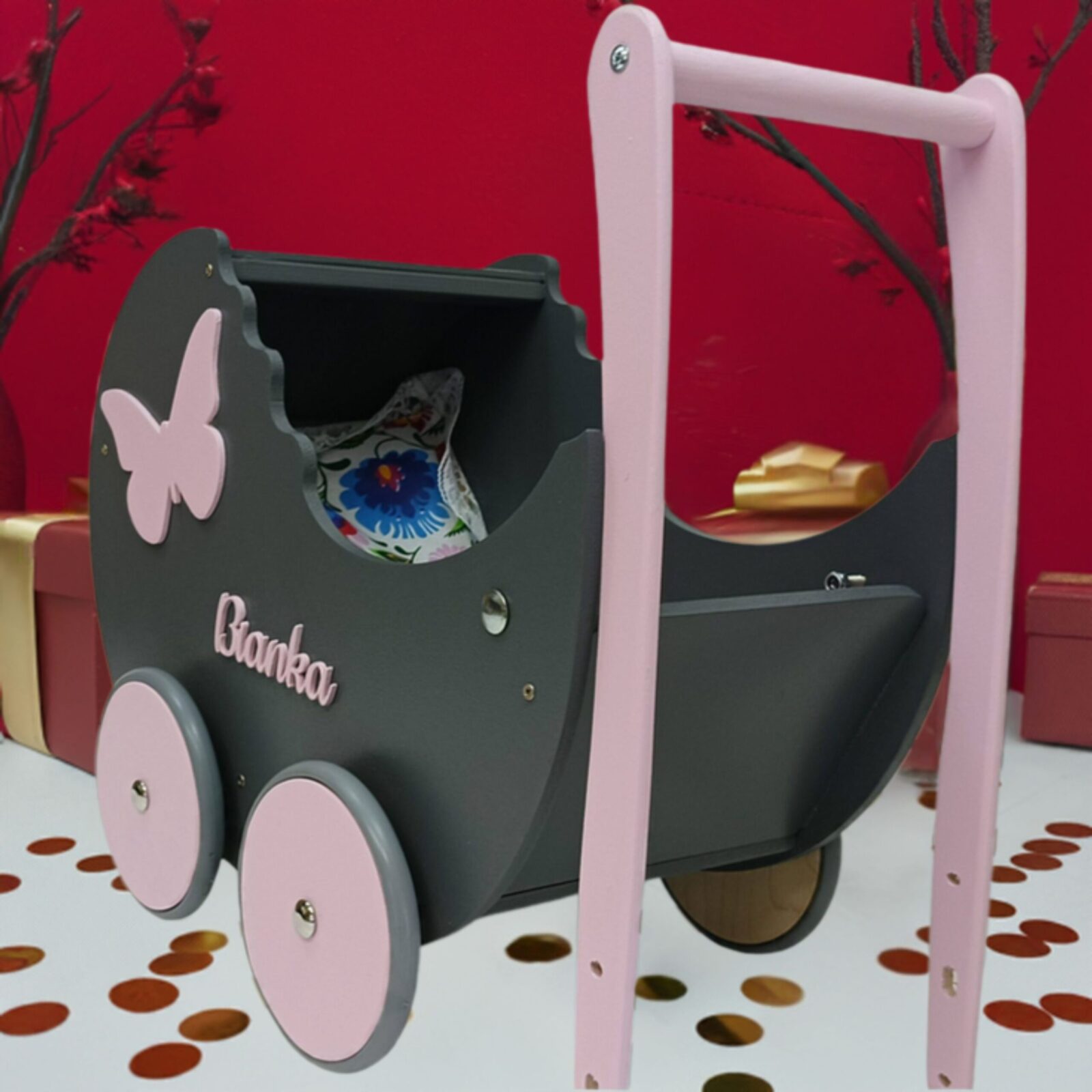 to idealny prezent dla Twojego dziecka. Ten wózek dla lalek jest wykonany z wysokiej jakości materiałów, a jego wyjątkowość polega na możliwości personalizacji.
