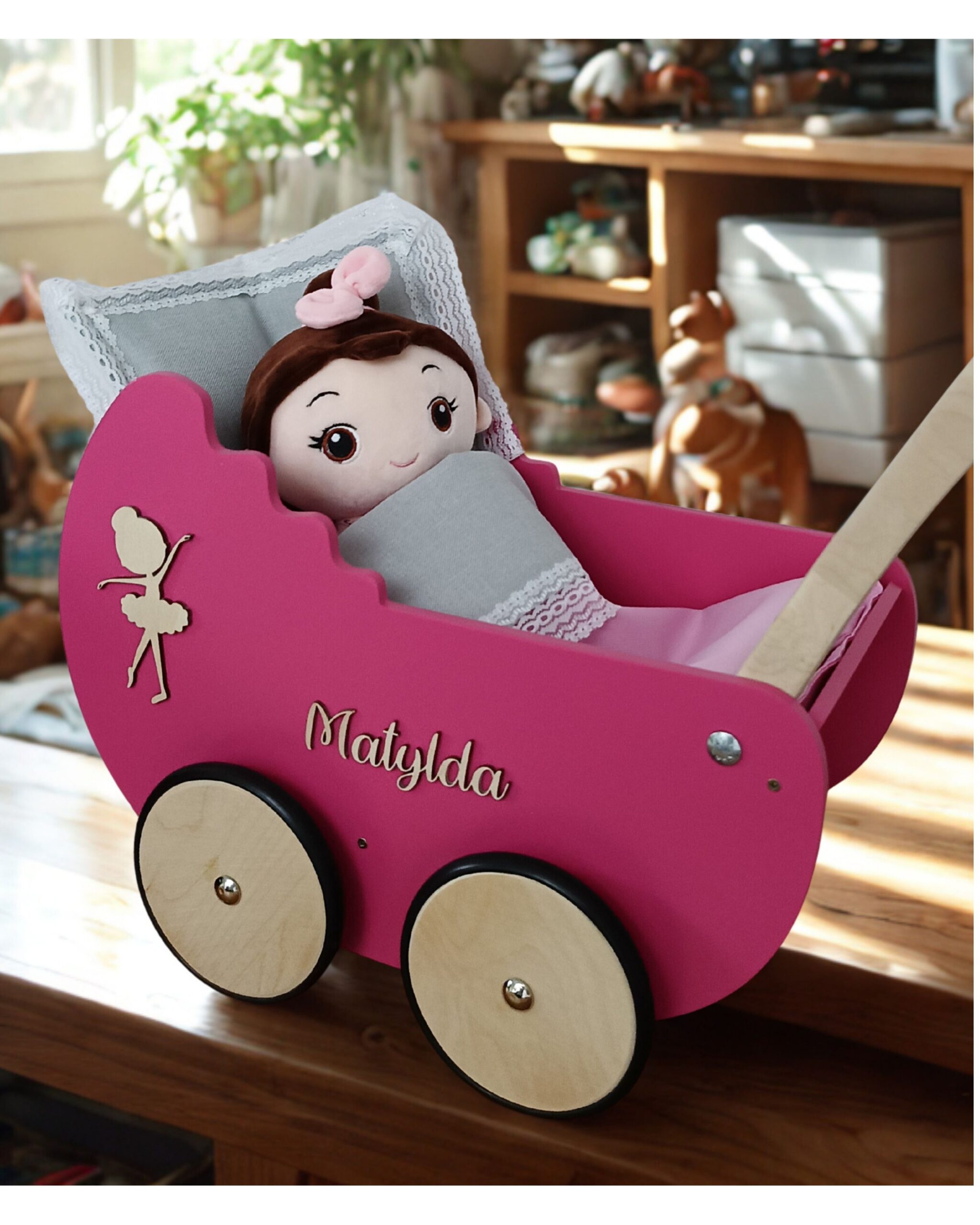 to idealny prezent dla Twojego dziecka. Nasz wózek dla lalek jest wykonaliśmy z wysokiej jakości materiałów, a jego wyjątkowość polega na możliwości personalizacji.