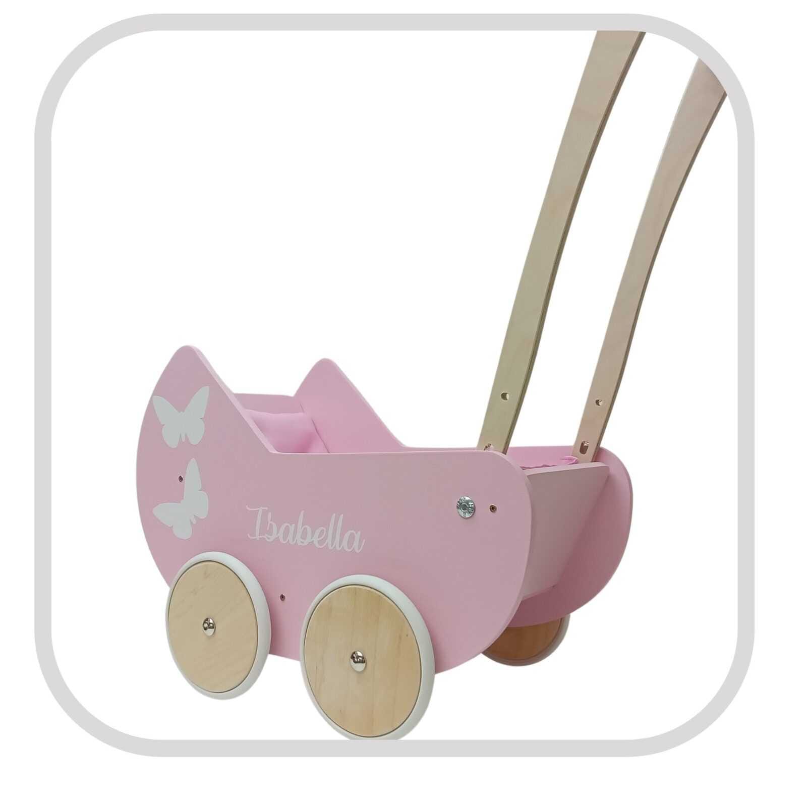 Nasz wózek dla lalek jest wykonany z wysokiej jakości materiałów, a jego wyjątkowość polega na możliwości personalizacji.