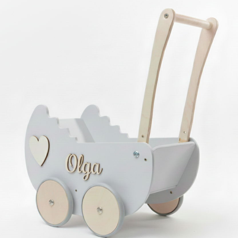 Drewniany Wózek dla Lalek z Imieniem Pchacz na Roczek