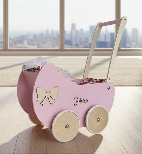 Witaj w Majsternia, miejscu gdzie tradycja spotyka się z nowoczesnością, a pasja do tworzenia pięknych, ręcznie wykonanych zabawek przekształca się w rzeczywistość. Nasz drewniany wózek dla lalek to esencja staranności, jakości i personalizacji. Zaprojektowany z myślą o najmłodszych, łączy w sobie funkcjonalność, bezpieczeństwo oraz estetykę, stając się idealnym prezentem na każdą okazję. Oraz pomaga w rozwoju jako Pchacz dla dzieci.